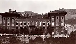 In Mostar, at the end of the 19th century, a city zone was defined on the tops of the triangular valley, which is cut along by the Neretva river. The increased traffic needs required a better connection across the Neretva, so in addition to the existing Stari Most bridge, which is being adapted for road traffic, three more bridges were built. The central city axis that connected the railway station - the new business center in the west - with the Francis Joseph Bridge (1888) with the mosque on the left bank, was transformed into a new social center. A school, a hotel "Neretva" and a city bath, colloquially named the Banja, are being built on that area, buildings that replace old inns and hammams. Parallel to the construction of this space, the architects of that time introduced eclectic decorative elements collected during study trips of Austrian architects in Egypt and Spain, with the aim of not completely negating the Islamic architectural spirit of the city environment.[7][8][5]