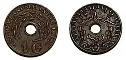 The Netherlands Indies guilder (Dutch: Nederlands-Indische gulden, Malay-Van Ophuijsen spelling: Roepiah Hindia-Belanda[1]) was the unit of account of the Dutch East Indies from 1602 under the United East India Company (Dutch: Vereenigde Oost-Indische Compagnie; VOC), following Dutch practice first adopted in the 15th century (guilder coins were not minted in the Netherlands between 1558 and 1681 and none circulated in the Indies until a century later). A variety of Dutch, Spanish and Asian coins were in official and common usage. After the collapse of the VOC at the end of the 18th century, control of the islands reverted to the Dutch government, which issued silver 'Netherlands Indies' guilder and fractional silver and copper coins until Indonesian independence in 1945.