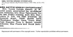 Speedy’s dedication to community work continued throughout her life. She was involved in organizing social programs and funding athletic clubs in Chicago, such as the Cynco Athletic Club in 1933.[17]