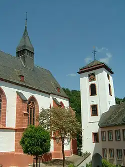 ![]() Neuerburg panorama with the parish house, castle and the church | |
