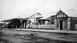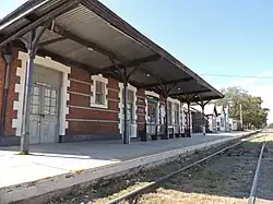 The station was officially declared a building of historic interest by the National Government in 2014.[1] It was built at the beginning of the 20th century by the British-owned company Buenos Aires Great Southern Railway, which designed it in the style of a British railway building of the time. Some of its characteristics are facede with exposed brick walls, galvanized sheet roofing, spruce floors, green flagstone baseboards and different wooden structures, such as doors, windows and platform eaves.[6] Some of the original structures and other elements have been kept since its construction in 1901, such as the clock, ticket offices and waiting rooms.[7]