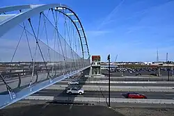 In November 2024, the state legislature passed a bill naming the bridge as the "Andre Lopes Korean War Veteran Overpass". Lopes died in 1956 from injuries sustained during the war.[29][30] The elevator shaft of the bridge will have artwork entitled "Equinox" by Tracy Silva Barbosa.[29] By December 2024, the bridge was 75% complete.[31] The footbridge was 85% complete by February 2025 and expected to open along with the station. The old footbridge was to be demolished in the spring.[32] Rail service began on March 24, 2025.[33][34]