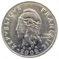 In September 2021 the IEOM issued a single set of smaller CFP franc coins common to all French Pacific Territories, to replace the two sets of coins used separately for New Caledonia and French Polynesia. The 1 and 2 franc coins were discontinued, and a new bimetallic 200 franc coin was issued. The old coins were withdrawn from circulation in January 2023.[1]