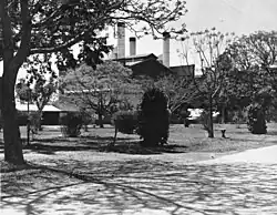 The small creek that formed the park's original north-eastern boundary was filled in over time. In 1917 a Brisbane City Council minute called for it to be filled as far as the drain from the kiosk. The creek was still present on a 1921 map, but in January 1922 a Brisbane City Council minute noted that the watercourse on the park's northern boundary had been reclaimed, and that a new boundary fence was required due to the addition of CSR land to the park. In September 1921 the CSR Refinery planned to extend Lamington Street to the river, which would cut off part of New Farm Park, but the company offered allotments in Richardson Street and Cowley Street, where the playground is today, as compensation. When the Brisbane Tramway Powerhouse (decommissioned in 1971) was built in 1927–1928 straddling the site of the creek, it occupied some undeveloped parkland, and the present boundary of New Farm Park was thus set by 1927. To screen the Powerhouse, some trees were planted in the 1930s, but they have since been removed.[1]