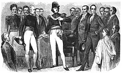 In Chilean historiography, the New Homeland is seen to have ended in 1823, with the resignation of O'Higgins in the open town council meeting of January 28.[1] O'Higgins, emotional, said goodbye to the audience with the following words: