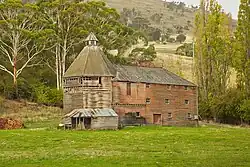 The pioneers were successful farmers of the rich land around the town. Initially cattle and sheep were predominant, with some cropping as land was cleared. Hop plants were introduced in 1846, and became an important crop. A number of hop drying kilns or oast houses remain in the area including those at Glen Derwent (built by Cullen) and Valleyfield.[19]