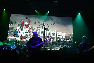 New Order are an English rock band formed in Salford in 1980 by vocalist and guitarist Bernard Sumner, bassist Peter Hook, and drummer Stephen Morris. Their fusion of post-punk and electronic dance music made them one of the most acclaimed and influential bands of the 1980s.[1] The band was formed after the disbandment of their previous band, Joy Division, following the suicide of lead singer Ian Curtis.[2] Later that year, keyboardist Gillian Gilbert joined the band. They became the flagship band for the Manchester-based independent record label Factory Records and its nightclub, The Haçienda. They worked in a long-term collaboration with graphic designer Peter Saville who worked on their album covers.[3]