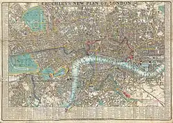 The New Road was a toll road built across fields around the northern boundaries of London, the first part of which opened in 1756. The route comprises the modern-day A501 (Old Marylebone Road, Marylebone Road, Euston Road, Pentonville Road, City Road, and Moorgate).
