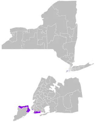 The district overlaps with New York's 7th, 8th, 9th, 10th, and 11th congressional districts, and with the 41st, 45th, 46th, 47th, 49th, 51st, 61st, 63rd, and 64th districts of the New York State Assembly.[7]