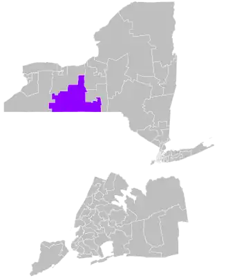 District 58 covers some or all of 5 counties in Western New York along the Pennsylvania border: Chemung, Schuyler, Steuben, Tompkins, and Yates, incorporating the cities of Ithaca and Elmira.[1][4]