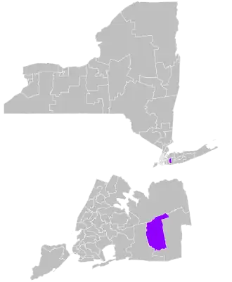 The district overlaps with New York's 2nd, 3rd, and 4th congressional districts, and with the 9th, 14th, 15th, 17th, 18th, 19th, 21st, and 22nd districts of the New York State Assembly.[5]