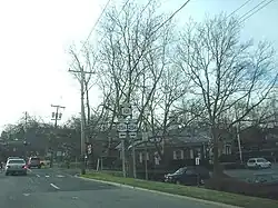 CR 101 begins at an intersection with Shelter Rock Road (CR 8) and Herricks Road near Herricks High School. The route heads eastward as Searingtown Road, passing to the south of the high school and to the north of a small pond. One block east of Herricks Road, CR 101 intersects with Old Searingtown Road, a former alignment of the current CR 101 alignment. At this point, the highway curves to the northeast and passes through a small area of trees nestled amongst a large, residential area bordering Williston Park. Old Searingtown Road rejoins CR 101 at the northern edge of the forested area.[4]