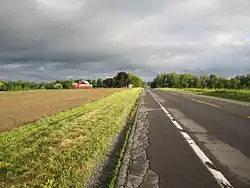 From here, the route turns north and runs along the farmland-covered ridge between Seneca and Keuka Lakes, which features a thriving Mennonite community.[4] The highway passes through the town of Milo, serving the small hamlet of Second Milo and the Penn Yan Airport before descending the ridge into Penn Yan, a village at the northeast end of Keuka Lake. It follows Brown and Liberty Streets in the village, sharing the road with NY 54 between Lake and Elm Streets. At the Elm Street intersection, located in Penn Yan's central business district, NY 54A ends at NY 14A and NY 54—completing its alternate loop of the latter—while NY 54 leaves NY 14A to follow Elm Street out of the village.[1] NY 14A continues on Liberty Street through the northern part of the village, where it meets the southern terminus of NY 364 at a junction adjacent to the Penn Yan Central School District's campus.