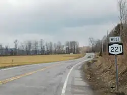 Within the village, the route gains the West Main Street moniker and heads through a mix of residential and commercial areas. NY 221 crosses intersections with CR 134A and CR 134B[3] and passes the former Marathon railroad depot before crossing the New York, Susquehanna and Western Railway and the Tioughnioga River in the center of the community.[4] After crossing the river, the renamed Main Street heads northeast through the village, intersecting with US 11 (Cortland Street) just ahead of an interchange with Interstate 81 (I-81) at the latter's exit 9. After the exit from I-81, NY 221 reenters another rural area and turns eastward past Dean Pond. After intersecting with CR 161B (Texas Valley Road) and CR 161C (Merrill Creek Road), NY 221 crosses Merrill Creek and winds through farmland. Entering the town of Willet, NY 221 crosses the southern terminus of CR 167 (Bloody Pond Road) and makes a gradual curve to the north while intersecting with CR 169 (Landers Corners Road). NY 221 continues north to the hamlet of Willet, where it ends at an intersection with NY 26 and NY 41.[3]