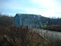At Twichell Road, NY 240 and CR 32 make a large bend to the west, crossing through Ashford before turning northeast and northwest. On the northwestern stretch, the route remains rural, crossing an intersection with Bond Road, where the route turns north along West Valley Road. NY 240 and CR 32 continue north through Ashford, intersecting with Beech Tree Road, where they cross Cattaraugus Creek just west of the Bigelow Bridge. After crossing the bridge, NY 240 enters Erie County and the town of Concord.[3]