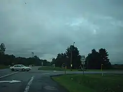 NY 291 begins at an intersection with NY 69 just north of the village of Whitesboro in the town of Whitestown. It travels northeast from this point, crossing over and briefly paralleling the Mohawk River as it enters the town of Marcy. Not long afterward, the route crosses over the Erie Canal and intersects River Road,[3] the pre-Utica–Rome Expressway routing of NY 49,[4] on the northern bank of the canal. Just north of River Road, NY 291 meets the aforementioned expressway at a partial cloverleaf interchange. The route continues on to Careys Corners, a small community centered around the junction of NY 291 and Old River Road one mile (1.6 km) from NY 69. After another mile (1.6 km) through a lightly populated area of Marcy, NY 291 heads north toward the hamlet of Marcy at a fork with Hayes Road.[3]