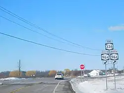 In the 1930 renumbering of state highways in New York, hundreds of state-maintained roads were given signed numbers for the first time.[8] By the following year, NY 336 was assigned to an alignment extending for 5 miles (8.0 km) from NY 15A (now NY 96A) just north of the town line in Fayette to NY 44 (NY 414) south of the hamlet of Fayette. The new route utilized the state-owned section of the Fayette–Varick town line road and the small section of the MacDougall–East Geneva road that curved into Fayette.[2][3] The segment of NY 336 east of NY 15 (NY 96) was accepted into the state highway system in the early 1930s.[9][10]