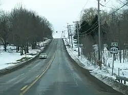 New York State Route 350 (NY 350) is a north–south state highway in western Wayne County, New York, in the United States. It extends for 11.40 miles (18.35 km) from an intersection with NY 31 and NY 31F in the village of Macedon to a junction with NY 104 in the town of Ontario. NY 350 serves as the eastern terminus for three routes: the aforementioned NY 31F, NY 286, and NY 441, all of which originate in the Rochester area. Aside from the village of Macedon at its south end and the hamlet of Ontario Center at its north terminus, NY 350 serves mostly rural areas dominated by farmland. NY 350 was assigned c. 1932 to the portion of its routing south of Cator Corners, the north junction with NY 31F. It was extended northward to its current terminus in the 1940s.