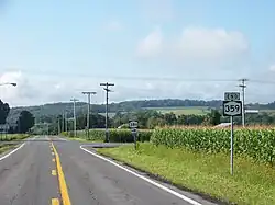 The origins of NY 359 date back to the assignment of the first state routes in New York in 1924. At this time, all of modern NY 359 became part of NY 26, a highway that continued north along what is now NY 41A toward the village of Skaneateles and south on modern NY 38A toward the village of Moravia.[6][7] In the 1930 renumbering of state highways in New York, NY 26 was reassigned elsewhere in the state. Its former routing was incorporated into several new routes, including part of NY 38A from Moravia to the modern junction of NY 38A and NY 359 and part of NY 41A from Mandana to Skaneateles. The portion that is now NY 359, however, received no designation and became unnumbered.[8] It was designated as NY 359 in the early 1940s.[2][3]