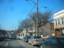 In Monticello, NY 42 gains the moniker of Forestburgh Road, passing through a large residential section of the village. After passing Monticello High School, the route bends northeast, entering downtown Monticello. The route becomes commercial just before an intersecting with Broadway, where NY 42 turns east onto Broadway and crosses through town as a four-lane main commercial street. A block after intersecting with the village continuation of CR 102 (St. John Street), NY 42 abandons Broadway for Pleasant Street, another two-lane commercial street through downtown Monticello. After an intersection with Rock Ridge Avenue, NY 42 enters an interchange with NY 17 (the Quickway; exit 105). The Pleasant Street moniker is dropped after the cloverleaf interchange, as NY 42 returns into the town of Thompson.[3]