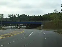 Although this portion of NY 441 is surrounded by woodlands, it is actually located in a largely developed area of Penfield known locally as Panorama. The woods cease as NY 441 approaches an interchange with Panorama Trail (NY 153), the lone limited-access junction along the divided highway. East of NY 153, NY 441 crosses over Irondequoit Creek and downgrades to a four-lane undivided highway at a junction with Penfield Road. Here, Route 441 becomes Penfield Road and enters the densely populated Hamlet of Penfield.[3]