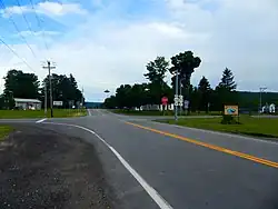 The route intersects CR 13 and CR 13A (Church Street) in the center of the village before heading into another stretch of open areas east of the community. About 1 mile (1.6 km) east of Canaseraga, NY 70 intersects NY 961F, a reference route signed as a touring route. At this point, the Southern Tier Line heads south to follow NY 961F toward Hornell and Canaseraga Creek turns north toward the Livingston County village of Dansville. NY 70, meanwhile, continues generally eastward toward the Steuben County line, traversing a wide north–south gully that carries NY 36 from Hornell to Dansville. The eastern track eventually gives way to a northeasterly alignment as the highway crosses into Steuben County and its town of Dansville. NY 70 ends just 0.24 miles (0.4 km) into the county at an intersection with NY 36 near the eastern edge of the valley in the hamlet of Dotys Corners.[1]