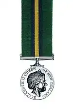 This medal was instituted in 2002 to recognise New Zealand personnel (both military and non military) who served in the Solomon Islands and its waters between June 2000 and June 2002.[2] Eligibility for the medal was later extended to those New Zealand personnel who have served with the RAMSI, and to New Zealand police personnel who provided support and assistance to the Solomon Islands Government in re-establishing order for 30 days or longer through 2013.[3]