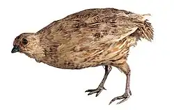 The New Zealand quail (Coturnix novaezelandiae), or koreke in Māori, is an extinct quail species endemic to New Zealand. The male and female were similar, except the female was lighter. The first scientist to describe it was Sir Joseph Banks when he visited New Zealand on James Cook's first voyage. Terrestrial and temperate, this species inhabited lowland tussock grassland and open fernlands.[3] The first specimen to be obtained by a European was collected in 1827 by Jean René Constant Quoy and Joseph Paul Gaimard on Dumont D'Urville's voyage. It most likely went extinct due to diseases from introduced game birds.