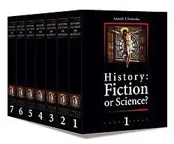 The concepts that constitute the new chronology has its origins in the work of Russian scholar Nikolai Morozov (1854–1946),[1] although the earlier work of the French scholar Jean Hardouin (1646–1729) can be seen as an intellectual progenitor.[2] The "new chronology" per se is most commonly associated with Anatoly Fomenko, a Russian mathematician by trade, though he has collaborated extensively (usually with fellow mathematicians) in his writing on the subject. The theory is most fully explained in History: Fiction or Science?, originally published in Russian.