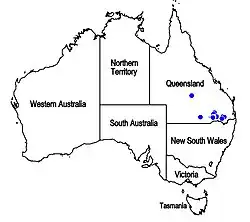1. ^ a b Munir, A.A. (29 December 1978), Taxonomic revision of Chloanthaceae trib. Physopsidae. Brunonia 1(4): 622-626, Fig. 43, Map 16