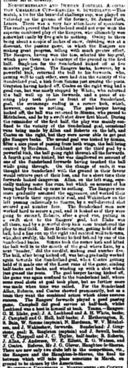 - ^ "Northumberland and Durham Football Association Challenge Cup - Rangers v Sunderland". Newcastle Journal: 4. 14 February 1881.