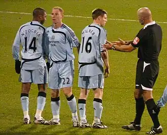 N'Zogbia, Butt and Milner in the wall at Fulham, December 2007