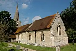 The Church of England parish church of Saint Giles[11] was built in the 12th century, its transepts were added in about 1200 and the west tower and spire were added early in the 14th century.[12] The building is Grade I listed.[13] The tower has a ring of four bells. Roger Landen of Wokingham, Berkshire cast the second bell in about 1450. Robert Eldridge of Wokingham cast the treble bell in 1592. Henry I Knight of Reading, Berkshire cast the tenor bell in 1608. Abraham II Rudhall of Gloucester cast the third bell in 1719. For technical reasons the bells are currently unringable. St Giles' also has a Sanctus bell that Ellis I Knight of Reading cast in 1639.[14] Gilbert Sheldon held the living of the parish for a time in the 17th century. Sheldon also simultaneously held the livings of Hackney, Ickford, Buckinghamshire and Oddington, Oxfordshire. After the Restoration of the Monarchy, Sheldon was consecrated Archbishop of Canterbury in 1663.