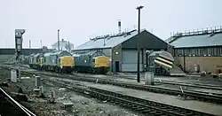 Before its closure in 1965, Class 08 shunters and Class 25 and 53 locomotives could be seen at the depot.[3]