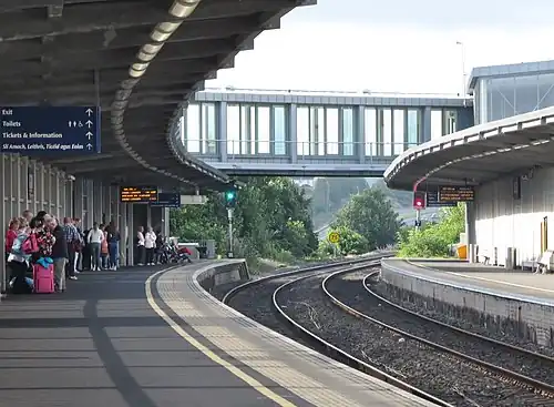 The station re-opened in 1984[12] as an NIR Intercity station, with basic facilities such as a temporary booking office.[12] These facilities remained in place for over 20 years from the station's opening by which time their condition was deteriorating. In order to improve facilities for passengers a modern new station building was constructed and officially opened on 26 November 2009.[14]