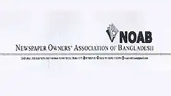 Newspaper Owners' Association of Bangladesh (NOAB) (Bengali: বাংলাদেশ সংবাদপত্র মালিক সমিতি) is an industry trade association of newspaper owners in Bangladesh.[1][2] The former President of Newspaper Owners' Association of Bangladesh is businessman AK Azad, publisher of the daily New Age and chairman of Ha-Meem Group.[3][4] Newspaper Owners' Association of Bangladesh and Bangladesh Sangbadpatra Parishad together represent the interest of the print media industry in Bangladesh.[5]