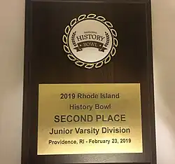 Award plaque of NNHS' History Team from the 2019 History Bowl. The team has received other plaques, including a first place plaque from the New Hampshire regional tournament.