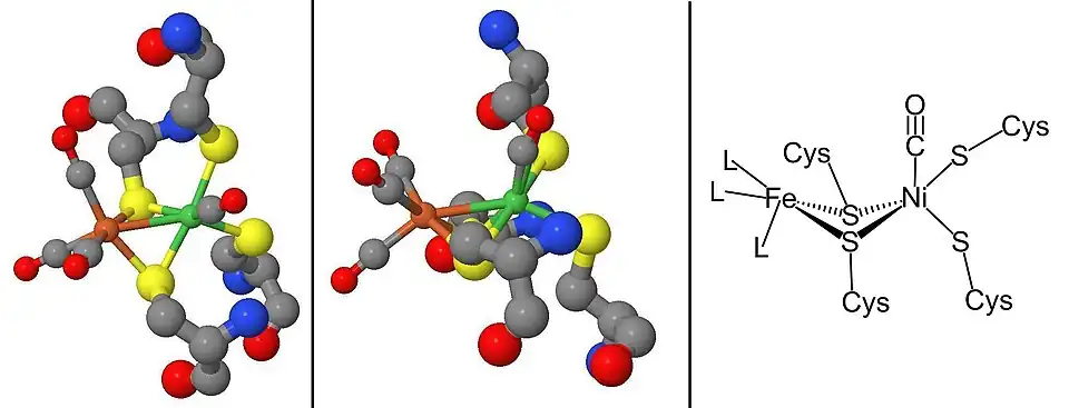 - ^ Higuchi, Y.; Yagi, T.; Yasuoka, N. (1997). "Unusual ligand structure in Ni-Fe active center and an additional Mg site in hydrogenase revealed by high resolution X-ray structure analysis". Structure. 5 (12): 1671–1680. doi:10.1016/s0969-2126(97)00313-4. PMID 9438867.