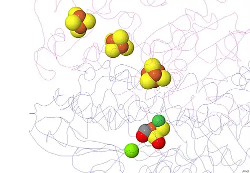 - ^ Volbeda, A.; Charon, M.-H.; Piras, C.; Hatchikian, E. C.; Frey, M.; Fontecilla-Camps, J. C. (1995). "Crystal structure of the nickel-iron hydrogenase from Desulfovibrio gigas". Nature. 373 (6515): 580–587. Bibcode:1995Natur.373..580V. doi:10.1038/373580a0. PMID 7854413. S2CID 4335445.