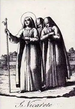 Saint Nicarete (5th century), was a woman of Nicomedia who became a saint as a disciple of St. John Chrysostom. She left her home specifically to study theology and practice devotion and care for the poor in Constantinople. She became a follower of John Chrysostom and worked as a physician as well as a healer for the poor. She cured John Chrysostom of a stomach ailment. Later, when Chrysostom was sent into exile from Constantinople, she went with him.