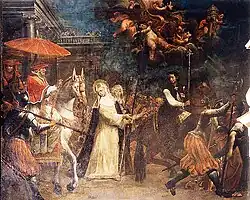 The Bichi Chapel of the Church of Sant'Agostino has an altarpiece of San Cristoforo (1755) that replaced the former triptych by Luca Signorelli.[1] He also has works in the church of San Giorgio in Siena.[2] He also painted the ceiling of the oratory of the painters guild in Siena, adjacent to the church of San Vigilio.[3] He painted a Return of Pope Gregory XI to Rome with Catherine of Siena once in the Oratory of the Santissimo Crocefisso in Siena.[4]