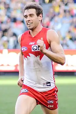He made his AFL senior debut in round 5, 2008 against Geelong after being promoted off the Rookie List earlier in the season.[2] Playing a further senior game against Hawthorn kicking his first senior AFL goal during the match. He was elevated to the Sydney Swans senior list full-time at the end of the 2008.[3] In 2009, he continued to add to his game tally by playing the last 11 matches of the season and was re-signed for a further two years.[4]
