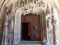 The weathered statues of the Apostles and Doctors of the Church in the portal, made between 1522 and 1525, were carved by Nicolau Chanterene and Jean de Rouen. They are the most emblematic piece of the whole monastic ensemble, harmonising the artistic elements of the Manueline with other features from Renaissance inspiration.