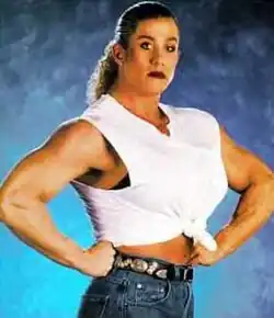 Bass soon joined the World Wrestling Federation (WWF), debuting as Sable's villainous bodyguard at WrestleMania XV on March 28, 1999.[1] She became involved in an extended feud with Debra McMichael, which culminated in a mixed tag match pitting Bass and Val Venis against Jeff Jarrett and Debra at the 1999 WWF Over the Edge, which took place directly after the death of Owen Hart at that pay-per-view.[9] On the June 7th episode of Raw Is War, Bass was then aligned with Venis until she accidentally whacked him with Jarrett's guitar after losing a bikini contest to Debra.[10] The following week, she interfered in a match between Debra and Ivory, with Debra losing her Women's Championship due to Nicole's interference.[11]