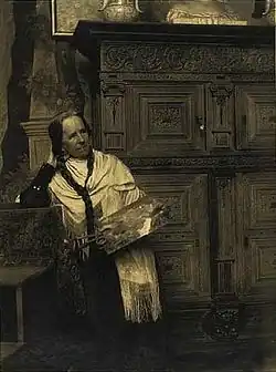 Nicoline Tuxen was regularly represented at the prestigious Charlottenborg Spring Exhibition (Forårsudstilling) in Copenhagen from the middle of the 1880s.[1] Further exhibitions with her participation were, for example, the Palace of Fine Arts at the 1893 World's Columbian Exposition in Chicago, Illinois.,[2] an exhibition in Antwerp 1894 and the "Nordische Kunstausstellung" Lübeck 1895. She mainly painted flower pictures and still life, in later years also portraits. Their works bear the unmistakable stamp of the Danish Golden Age of painting.