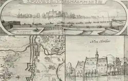 In 1586 the city militia garrisons in many places surrounding 's-Hertogenbosch, including Nieuw-Herlaer, were commanded by Captain Bontenos van der Sterre.[8] In 1587 the Dutch Army invaded the Meierij in order to try and lift the Siege of Sluis (1587). In June it reached Veghel and Erp, southeast of 's-Hertogenbosch. Next it went to Sint-Oedenrode and returned to Capelle via Esch, moving south of 's-Hertogenbosch. Next, it turned back to the Meierij in order to destroy as much as possible. In June 1587 the Dutch army arrived before Loon op Zand Castle and took it after a week's siege. It next moved forward to the southeast, and on 1 July 1587, the Royalist garrisons of Nieuw-Herlaer and Nemerlaer Castle retreated. That same day Boxtel surrendered. The Dutch army would also take Eindhoven, but Helmond Castle put up a successful resistance.[9] During the late sixteenth century the watermill of Halder, which was within sight of the castle, was very important for fulling wool cloth. It got a safeguard against plunder in 1596. It meant that inhabitants of the Meierij which paid contribution to the Dutch Republic could exercise this important economic activity at Halder without getting plundered.[10]