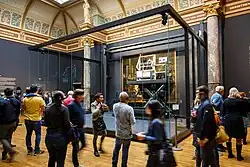 In July 2019, a long and complex restoration effort began. The restoration took place in public, in a specially made glass enclosure built and placed in the Rijksmuseum and was livestreamed. The plan was to move the 337 kg painting into the enclosure starting when the museum closed for the day on 9 July, then to map the painting "layer by layer and pigment by pigment", and plan conservation work according to what was found. Taco Dibbits, the Rijksmuseum's general director, said that despite working there for 17 years, he had never seen the top of the painting; "We know so little on how [Rembrandt] worked on making The Night Watch."[19]