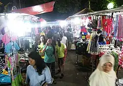 Night markets are commonly known as Pasar Malam by the locals, which literally means night market, "pasar" being related to "bazaar" in Persian or also the meaning "market" in Malay/Indonesian, and "malam" meaning "night". A pasar malam is a street market in Indonesia, Malaysia and Singapore that opens in the evening, usually in residential neighbourhoods.