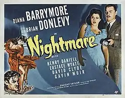 Nightmare is a 1942 American film noir crime film directed by Tim Whelan and starring Diana Barrymore, Brian Donlevy and Henry Daniell. The film was based on a novel of the same name by Philip MacDonald.