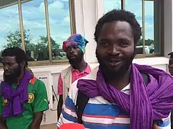 Formed by and originally loyal to Bernard Kolélas,[3][4] the Ninja militia was associated with the Bakongo ethnic group.[1] The militia was named after the ninjas of feudal Japan.[5] The Ninja field commander, Pastor Ntoumi, has been described as a cult leader[1] and a "messianic pastor". In 2003, he told a journalist that the Holy Spirit told him to revive the Ninjas. Ninja militiamen wore the colour purple (symbolizing suffering), and had their hair in dreadlocks. They were reported to believe that the apocalypse was near.[6] A Ninja leader quoted in a 2000 report claimed that there were "almost 16,000 Ninjas in the Pool region".[2] According to a 2002 news report by IRIN News, analysts believed Ntoumi commanded "only a few hundred dedicated fighters and up to 3,000 more loosely attached", the latter of which were divided and unenthusiastic.[1]